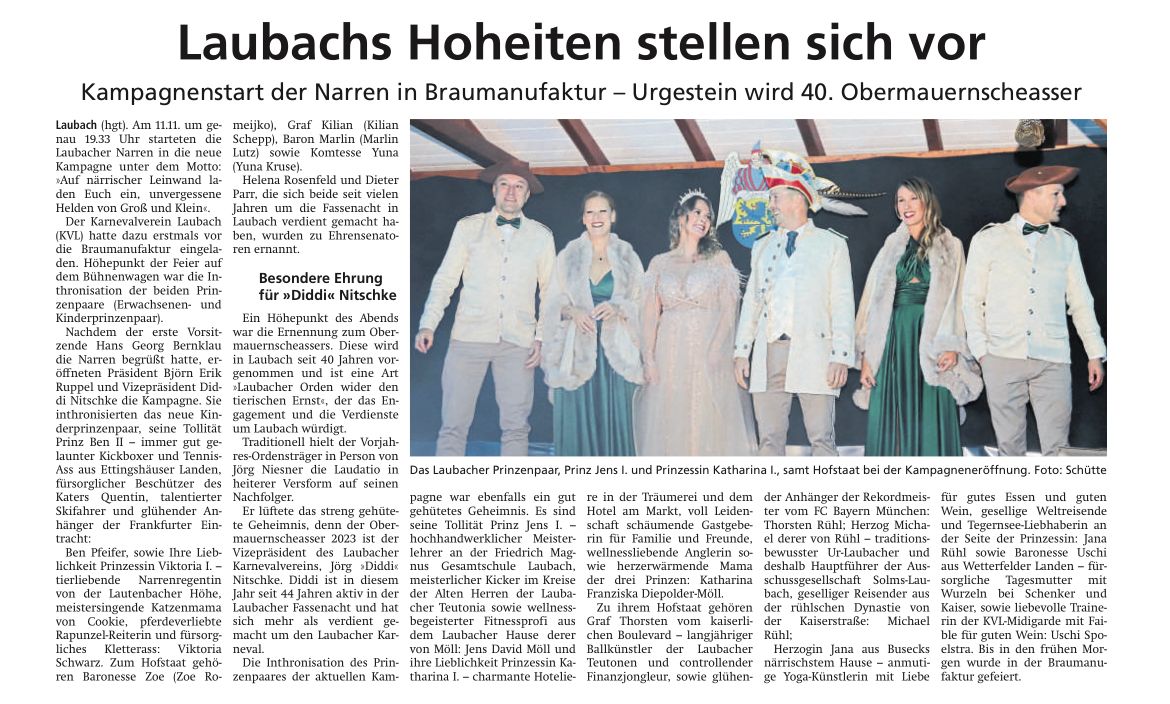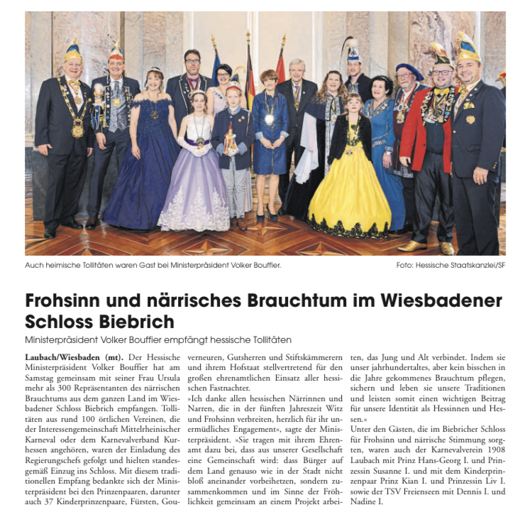 Wir haben die heiße Phase unserer diesjährigen Kampagne mit dem wunderschönen Prinzenempfang im Schloss der Grafen zu Solms-Laubach eröffnet. Wir danken allen unseren Gästen für die einzigartige Atmosphäre, die ihr geschaffen habt und wünschen Euch eine tolle Kampagne.