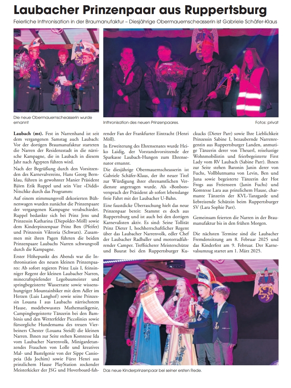 Besuch der Laubacher Prinzenpaare im Schloß Laubach, im Laubacher Stift und in der Sparkasse.