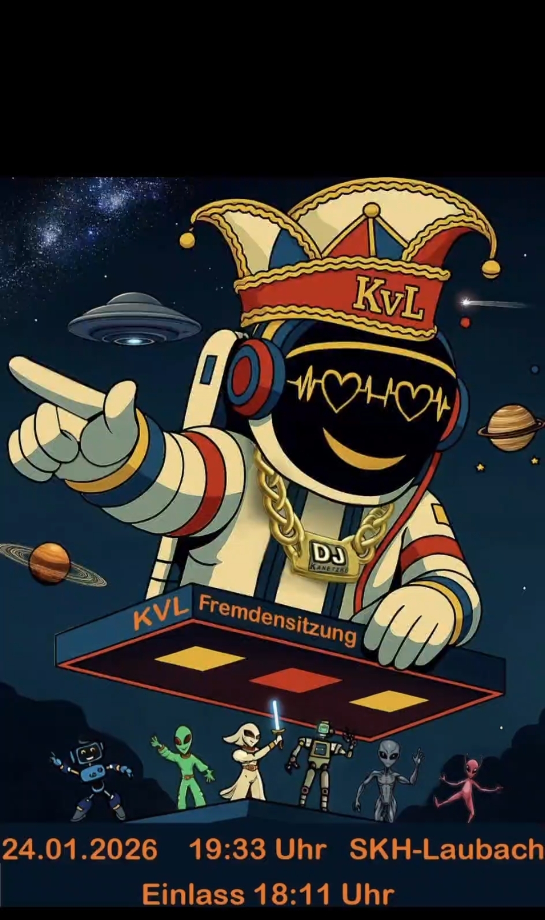 Wir alle freuen uns schon auf die kommende Fremdensitzung. Diese findet am 24.01.2025 in der Sport- und Kulturhalle Laubach statt. Der Einlass beginnt ab 18:11 Uhr und beginn der Fremdensitzung um 19:33 Uhr.